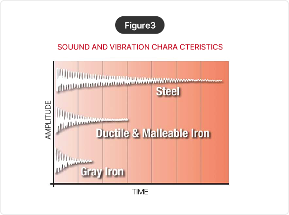 Excellent dampening of both noise and vibration in flake and nodular, due to the graphite in the structure in Figure 3.